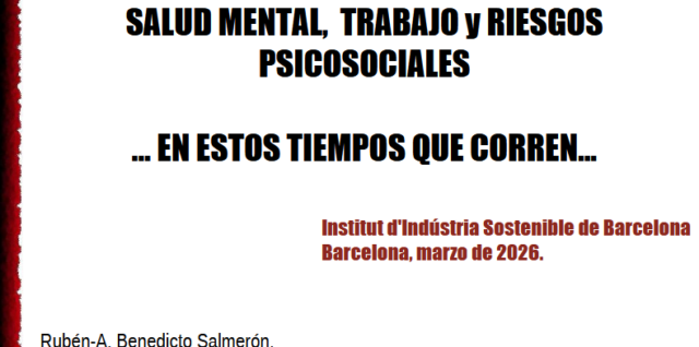 Charla «Salud mental, trabajo y riesgos psicosociales en estos tiempos que corren…» Publicado el 11 de abril de 2026 por De-liberaciones En el Institut d’Indústria Sostenible de Barcelona el marco de las Jornadas Técnicas organizadas por el departament de Transversals, el 18 de marzo de 2026 .